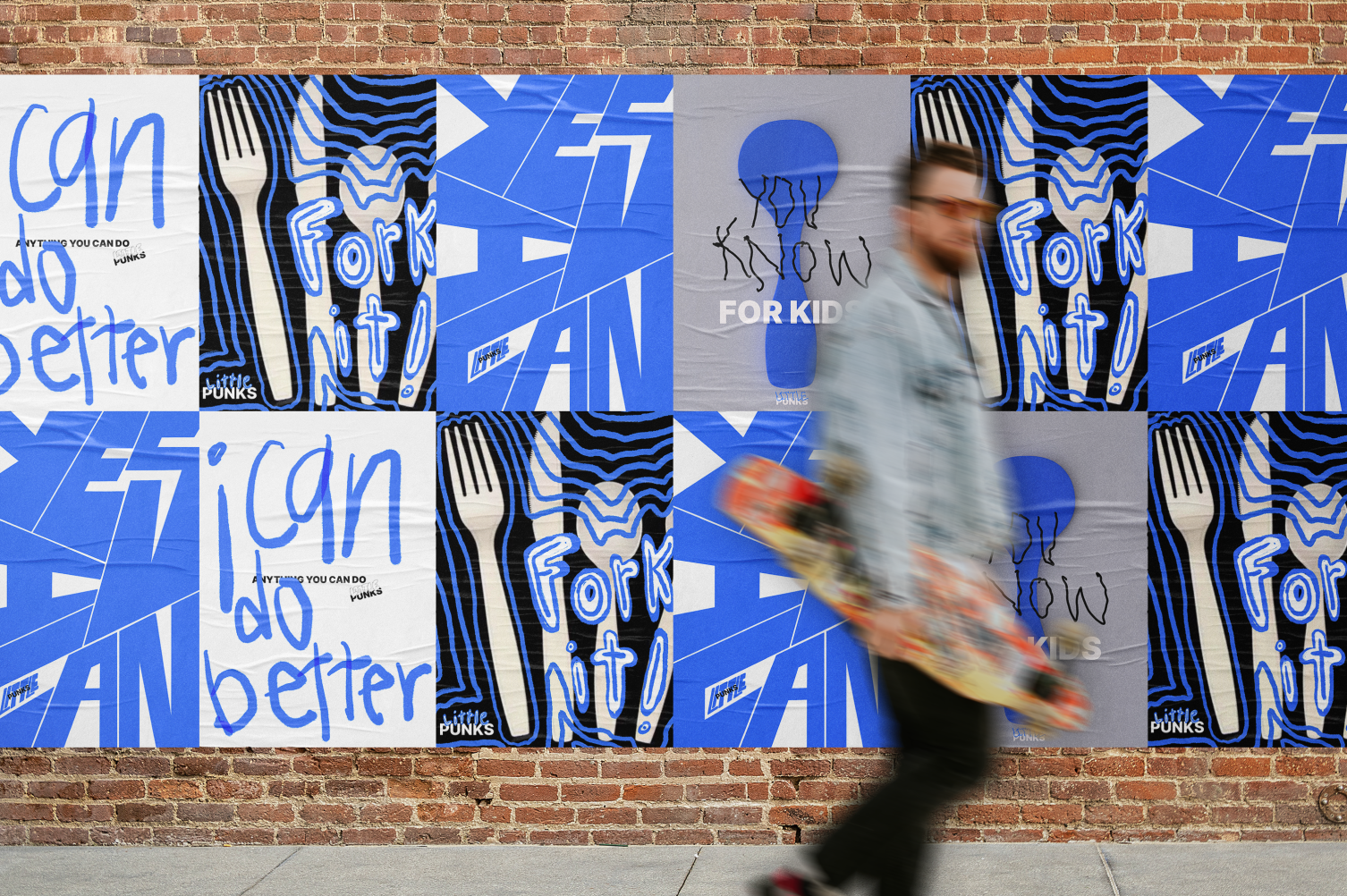 BRANDINGLittle Punks is a creative challenge based on the brief of creating a brand strategy for plastic utensils. After being given the object I would be designing for, I built a brand strategy that told the story visually through logos, colors, fonts, posters, packaging and promotional material.